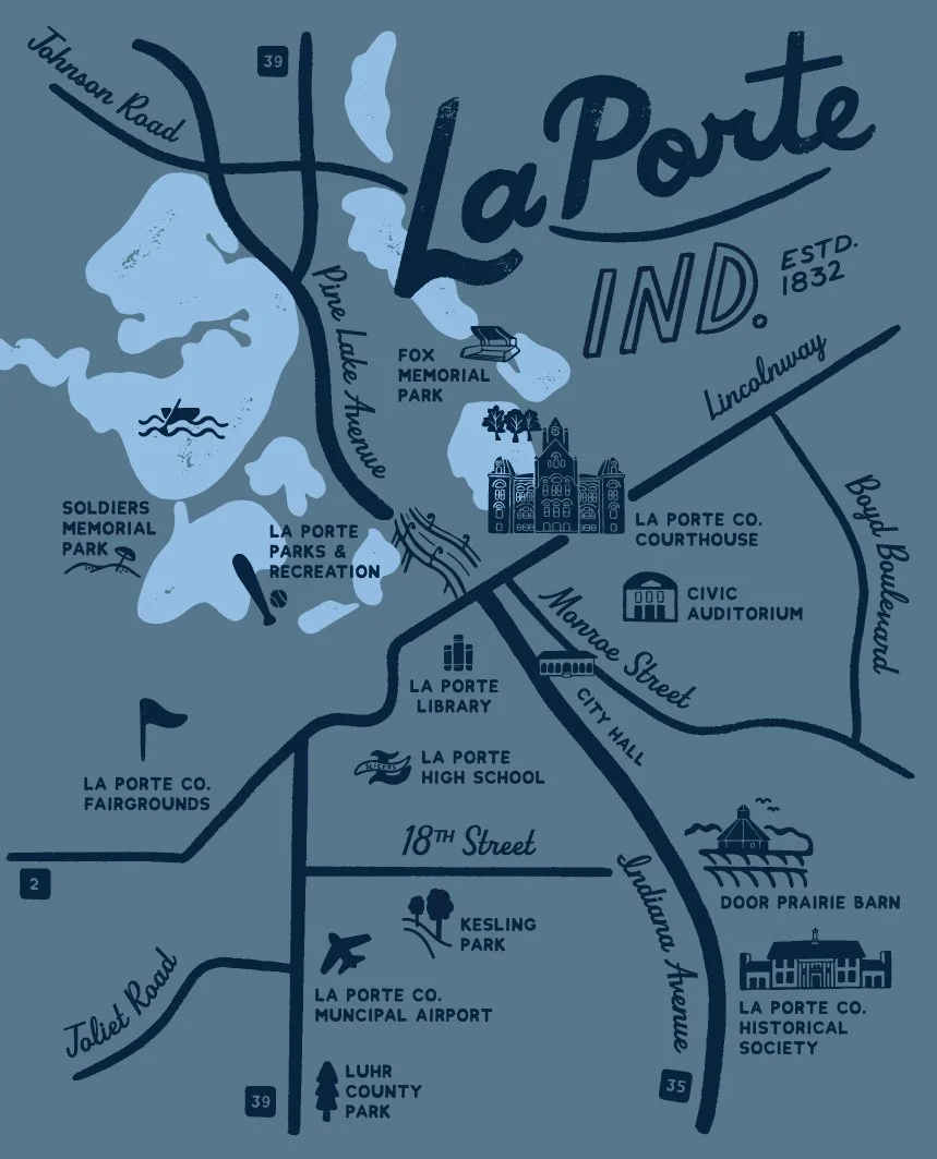 The City of La Porte partnered with me for official merchandise, hand-drawn maps, and fundraising initiatives